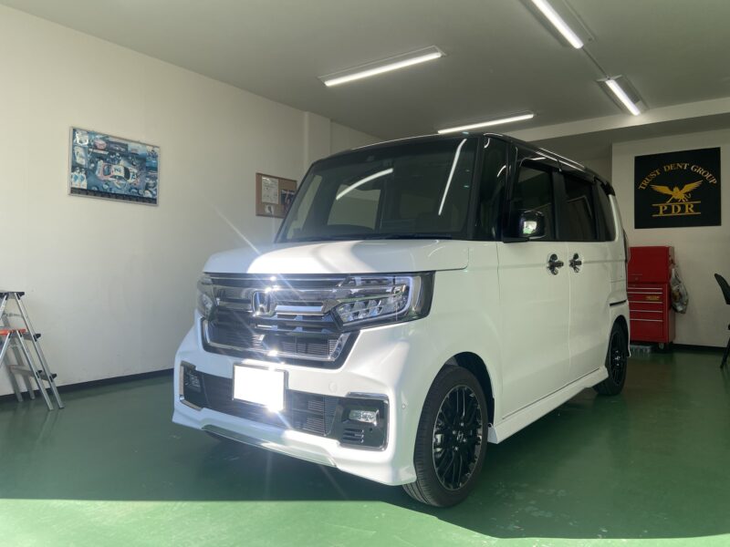 新車に対して切断を伴う板金塗装による修理はあり得ない選択肢であること、またデントリペアについては以前から知っていたので、信頼できそうな店を探して、ひとつの迷いも無くこのお店に修理をお願いしました。